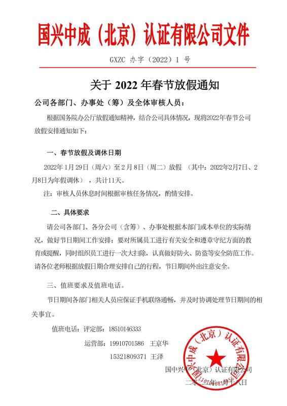 關(guān)于 2022 年春節(jié)放假通知
